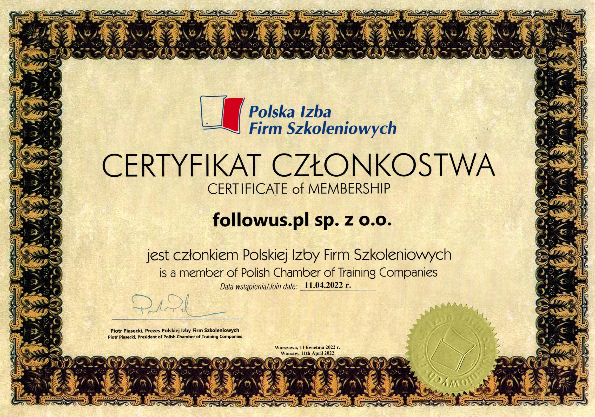 Data 11.04.2022 jest dla nas bardzo ważna, bo tego dnia zostaliśmy członkami PIFS czyli Polskiej Izby Firm Szkoleniowych. Co to dla nas oznacza? PIFS jest to największa organizacja branżowa zrzeszająca firmy szkoleniowe i doradcze z całego kraju. Bycie członkiem ma wiele zalet. Liczne spotkania, szkolenia on-line, warsztaty pozwalają nam być na bieżąco. Wiemy "co w trawie piszczy". Jesteśmy w stałym kontakcie z najlepszymi fachowcami w branży. Co warto podkreślić przynależność do organizacji wymaga od nas świadczenia usług na najwyższym poziomie, zgodnie z Kodeksem Dobrych Praktyk PIFS który określa "preferowane zachowania i postawy z punktu widzenia dobrego imienia branży, obowiązującego prawa, fundamentalnych zasad funkcjonowania środowiska i ochrony interesów branży" [1] Należą do nich m. in. - wykonywanie usług z uczciwością i należytą starannością, - wykonywanie usług rozwojowych uwzględniając cele i potrzeby Klienta, - wykorzystywana wiedza oraz używane metody i narzędzia są oparte na dowodach ich prawdziwości lub skuteczności oraz gwarantujemy ich kompetentne i profesjonalne zastosowanie. Najważniejsze jest jednak to, że promujemy szkolenie się cały czas, co prowadzi do rozwoju osobistego, ale także rozwoju firmy. Oprócz bycia członkiem PIFS bierzemy czynny udział w pracach Grupy Tematycznej ds. BUR (Biuro Usług Rozwojowych), gdzie rozwiązujemy bieżące problemy związane z realizacją szkoleń w BUR. Cieszymy się, że możemy być częścią większych organizacji i mamy doskonałe warunku do wymiany doświadczeń i rozwijania siebie, a co za tym idzie udzielania jeszcze lepszego wsparcia w zakresie organizacji szkoleń naszym Klientom. [1] https://pifs.org.pl/#corobimy